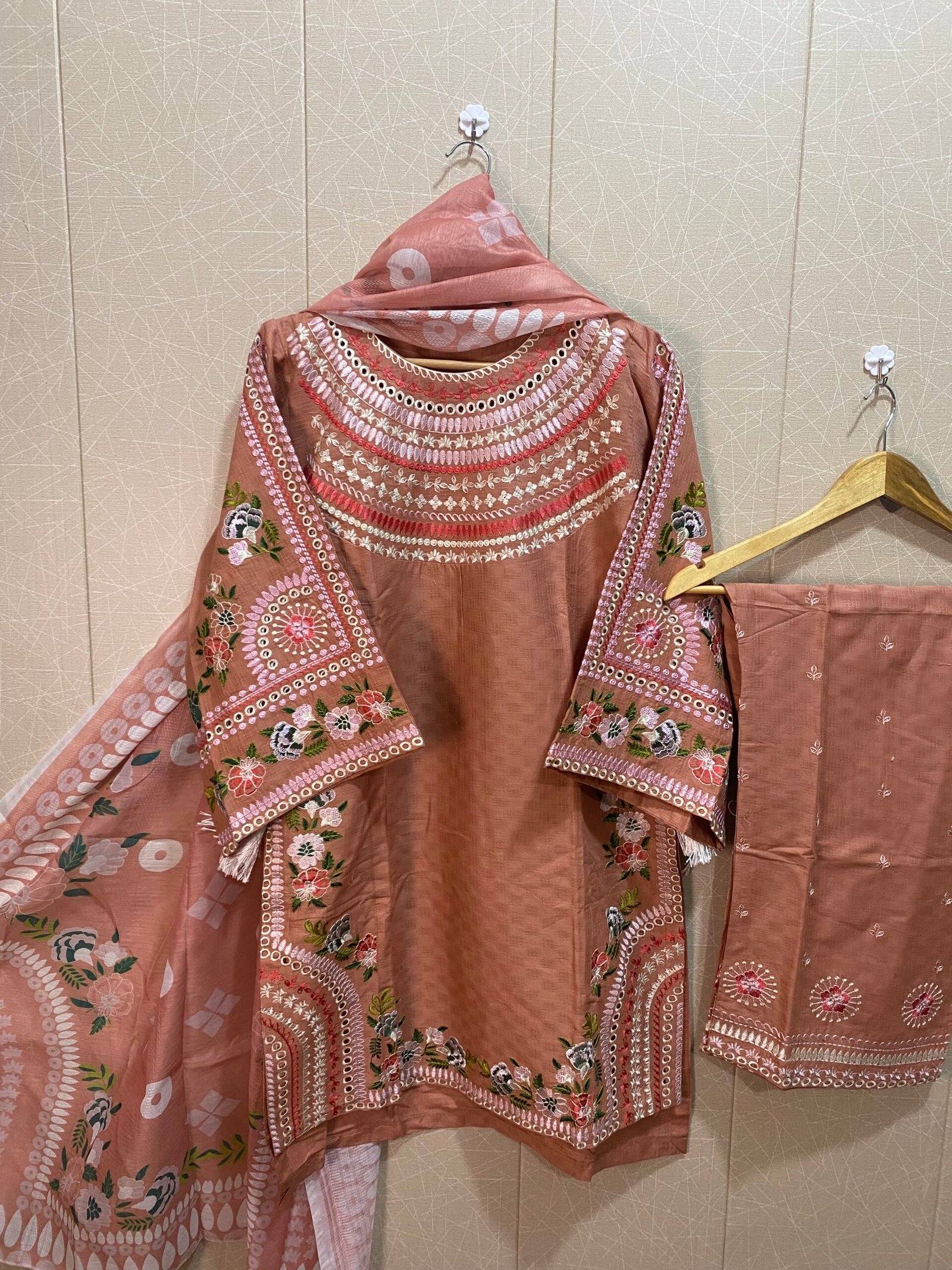 3 pc stitched fully embroidered dress