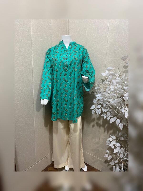 its a 2 pc stitched dress,loose fited top wt plazo. stuff is cambric law best for summer and mid season too.
