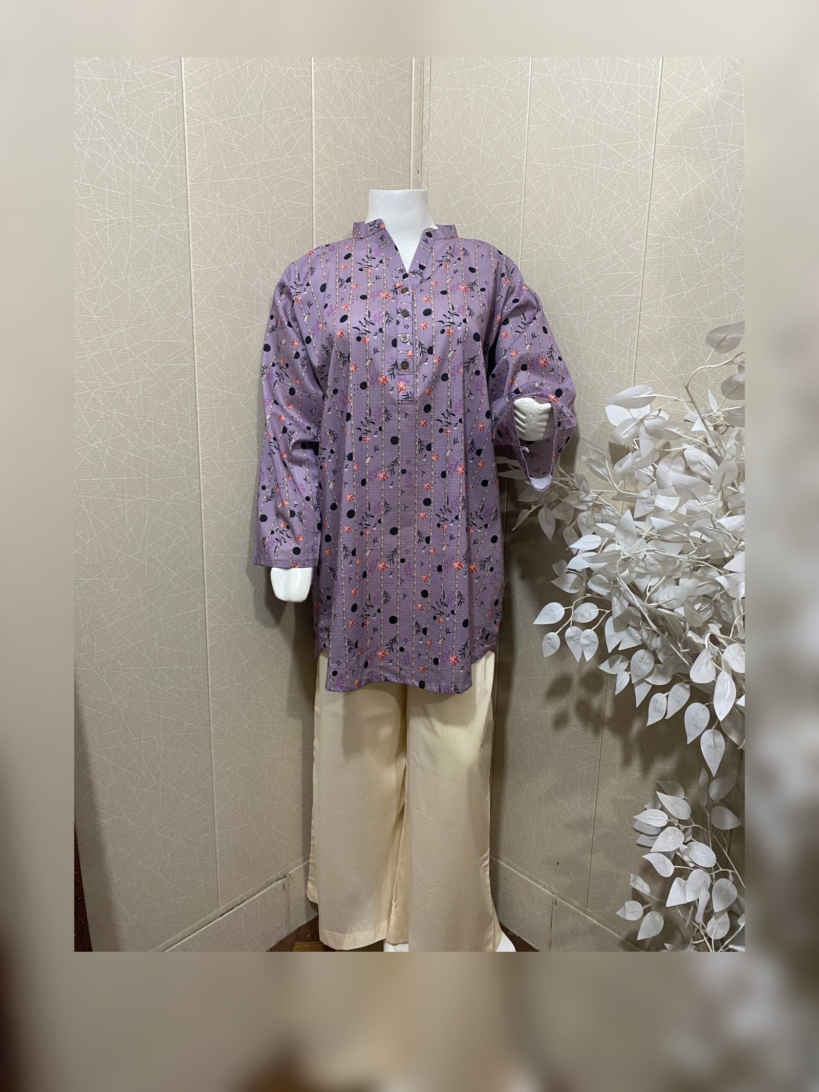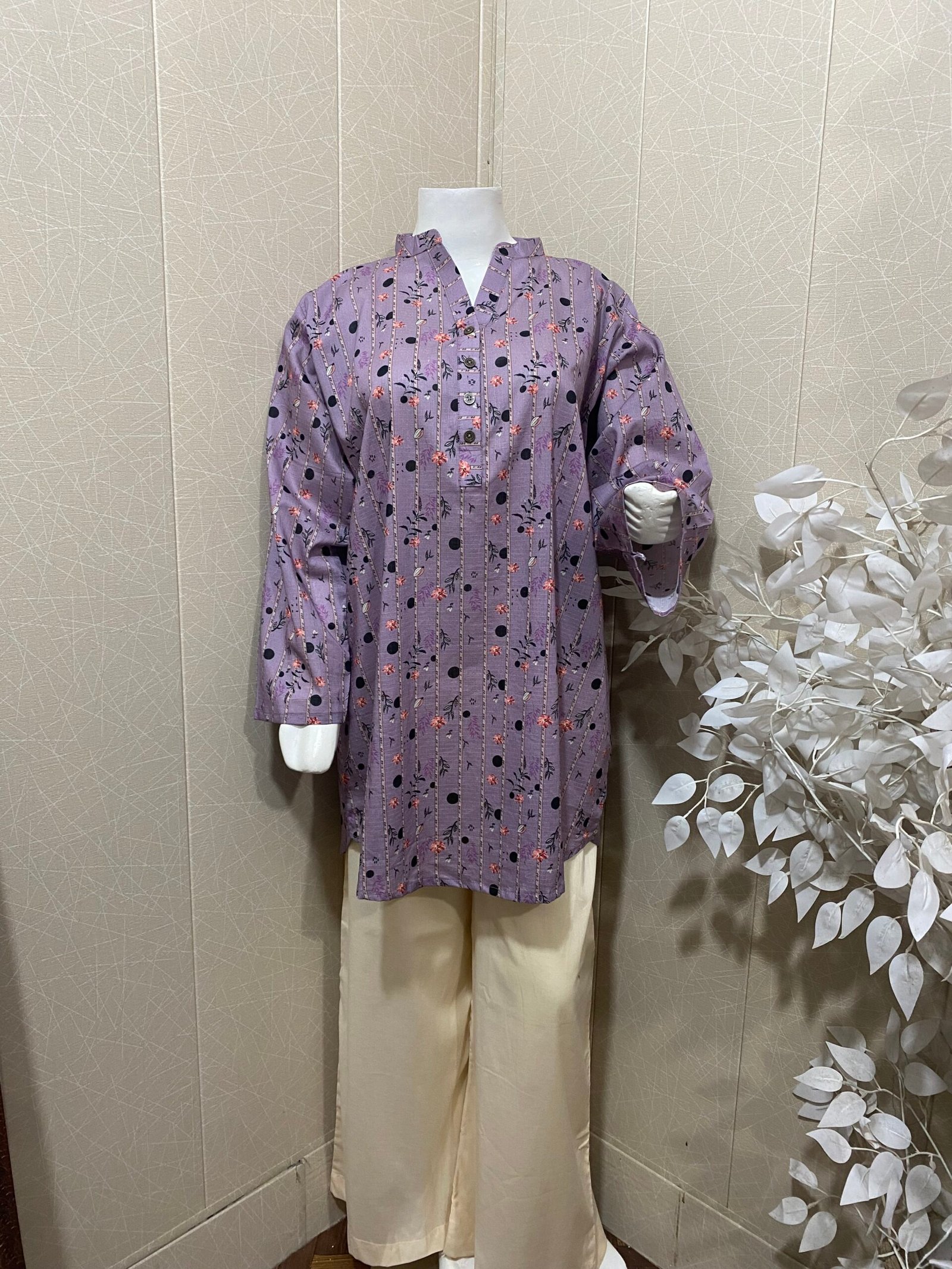 its a 2 pc stitched dress,loose fited top wt plazo. stuff is cambric law best for summer and mid season too.
